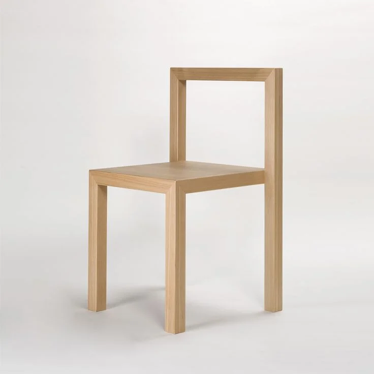 På billedet (fig 3.1) ses en stol i træ. Stolen er enkel. Den gør brug af ét materiale, én farve, en ensartet dimensionering og formgivning, en simpel konstruktion og en indlysende funktion. Den har ingen svungne linjer og holder sine rette linjer i det horisontale og vertikale plan. Der er ikke andet end enkelhed i denne stol og den efterlader ikke noget til eftertanken. Den er kedelig og man bliver hurtigt færdig med den: “er det bare det?” Det betyder imidlertid ikke at stolen er forkert, grim eller ikke virker, men den er ikke et interessant design.